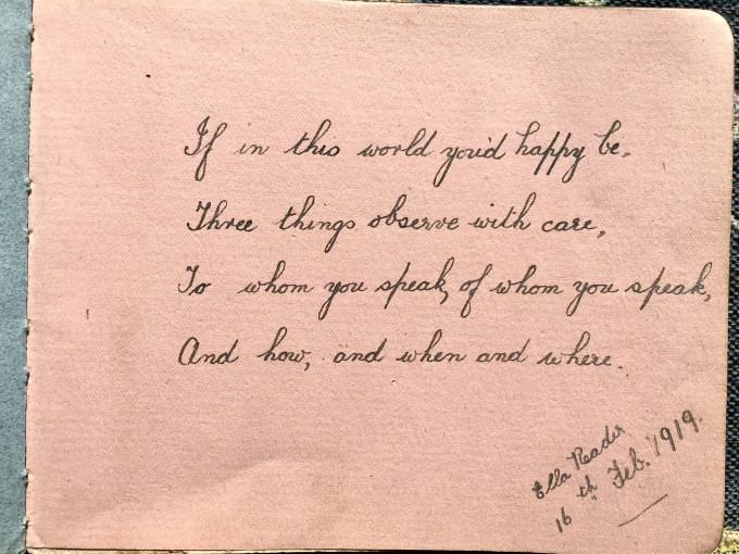 This is my grandmother Alice whom I named by biz after:) AliceinParis! Here she is about 16 years old. I recently found a small Autograph Album of hers buried in a box of old photos. This album is almost 100 years old!