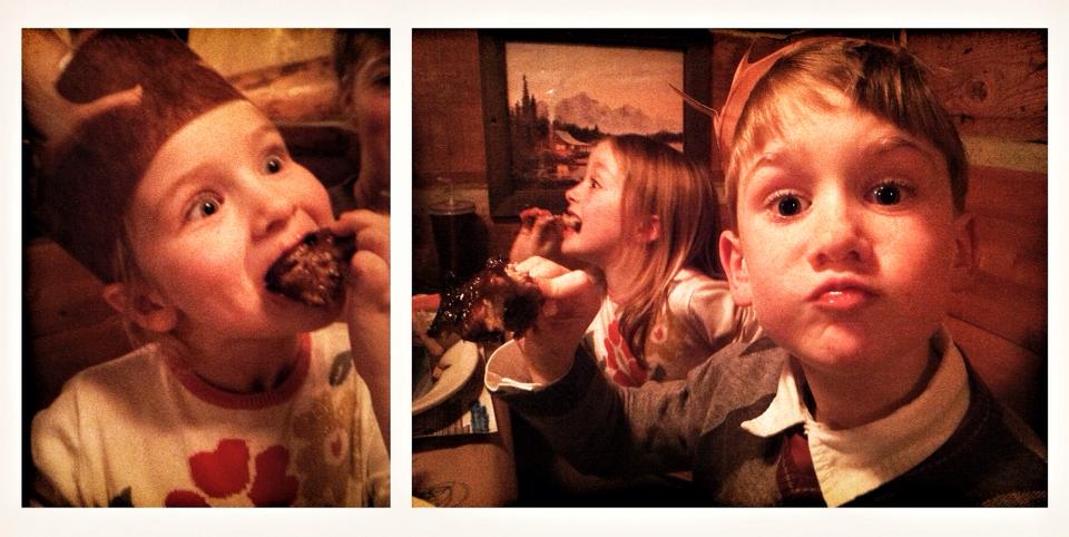 All our kids ordered the ribs and were totally psyched when their meals arrived at the table in little cardboard canoes. What an incentive to get them to eat so they could play with the canoe after. We didn’t hear a word from them as they gobbled down their ribs, veggie sticks and mashed potatoes…except of course when they all agreed that the ribs were awesome!