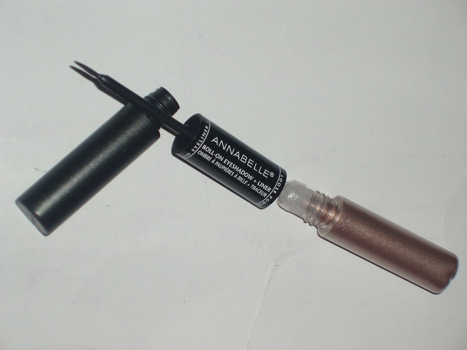 Swatches of the roll-on eyeshadow and liner, and the bronzer.