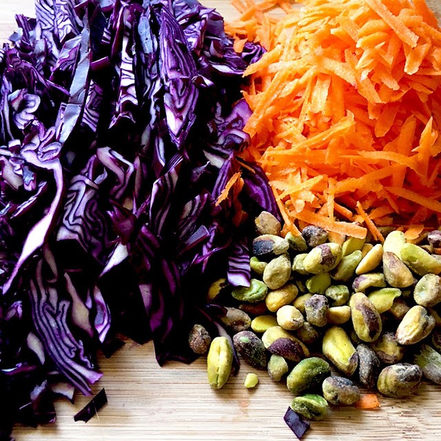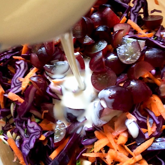 ARTIST COLESLAWToss in some halved or quartered seedless grapes. About half a cup. They are a secret ingredient adding a wee burst of sweetness amidst the crunch. You could also substitute some sweetened dried cranberries or perhaps some mango! Remember, as with all salads, you add more of what you like and less of what you don’t! Experiment and see what happens:)