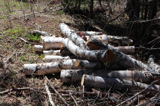 Pile of birch logs waiting to be inoculated