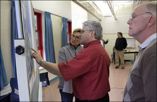 Bedford residents inspect one of three development concepts for the Bedford Waterfront. The concepts were unveiled during a public meeting at Basinview Drive Community School on Wednesday evening. Story to follow.