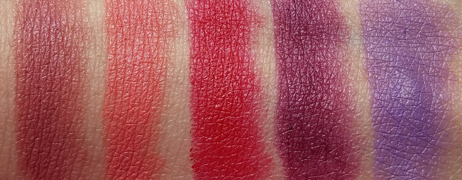 Catoure still appears quite nude on me, but with a pink undertone which gives me a bit more life than a straight nude. Coral Cat is appropriately named, needs a bit of layering for colour payoff. Crimson Cat, which I had hoped to be a classic red, turns out to have a pink undertone, and Maroon Meow is dark but not hard to even out (not streaky), with great pigmentation.