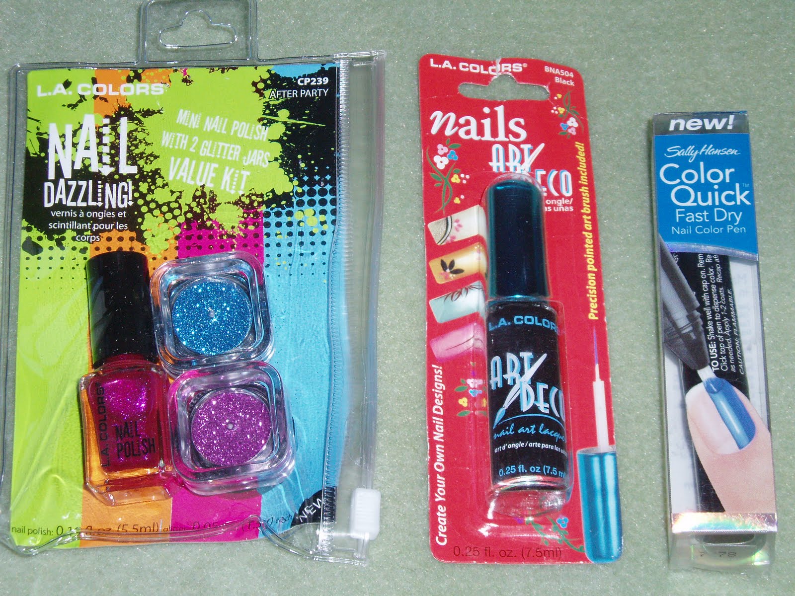 – LA Colors Nail Dazzling kit with a mini nail polish and 2 glitter jars