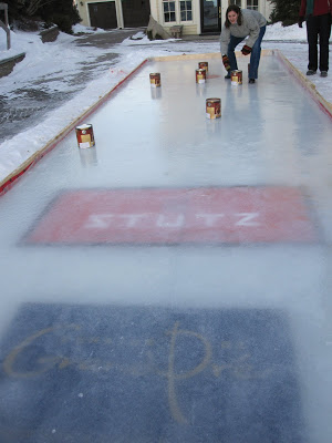 When we arrived at Grand Pre, Owner Hans Peter Stutz and his daughter, Cacilia Stutz–Spirig welcomed us with ice…a curling ice, that is. Last wknd, Grand Pre hosted their first Paint Can Curling Tournament! Now, I’ve watched curling before, and to be honest, I thought it was pretty boring. But THIS, was fun! Paint cans filled with sand served as the stones, and Grand Pre had created an ice surface for the event- complete with the winery’s logo- a sponsor’s dream!