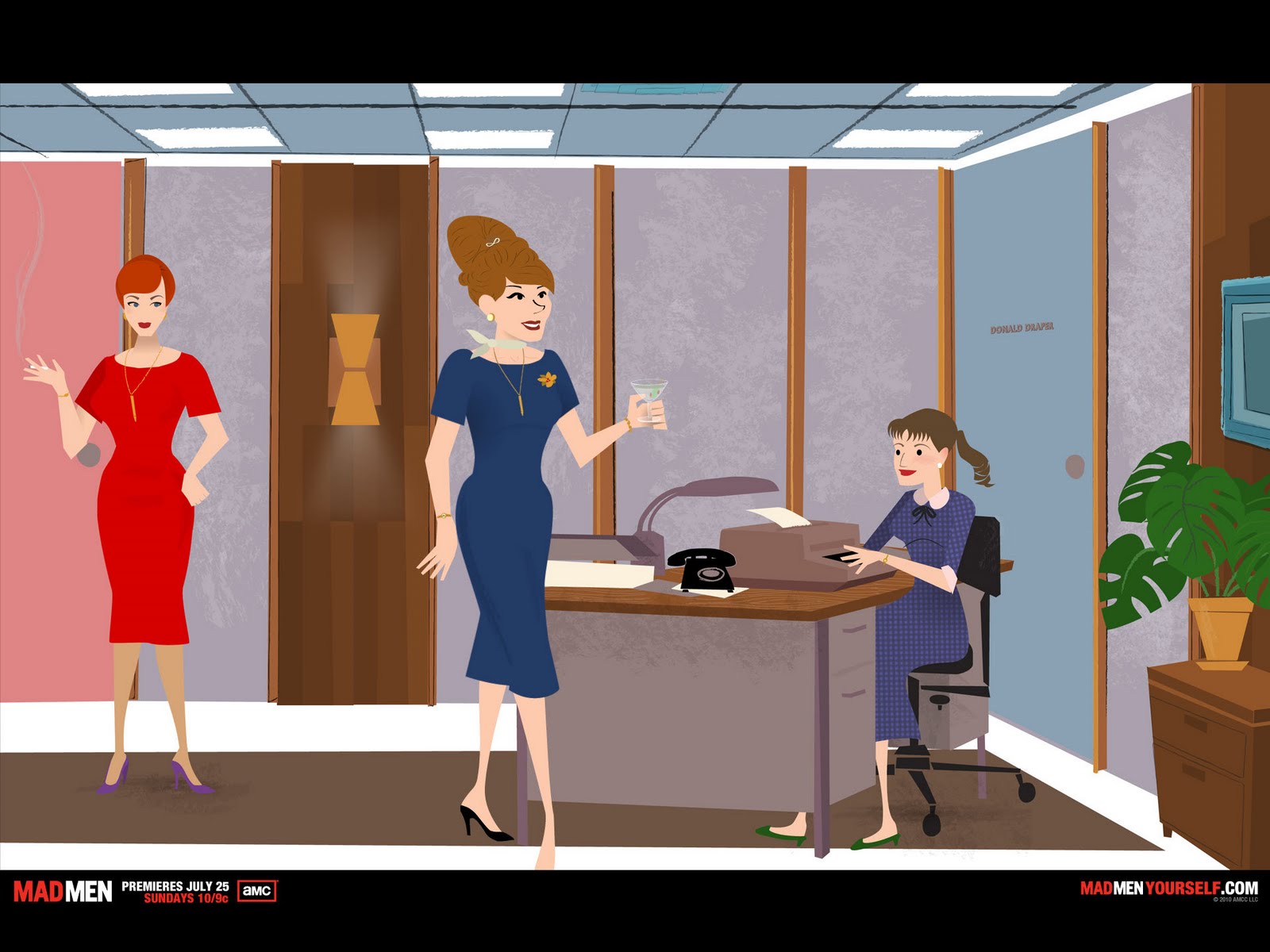 Mad Men is a beautiful, artistic, captivating show that both men and women can enjoy. It’s perfect for you if you love old movies, retro fashion or well-written and smart television. It’s also a great theme for a party (hint hint, people who are my friends). I thoroughly enjoyed season one and can’t wait to watch more. For those of you caught up on the first three seasons, the fourth season will debut this Sunday, July 25. In the meantime, get your 60s ad exec fix and “Mad Men Yourself“: