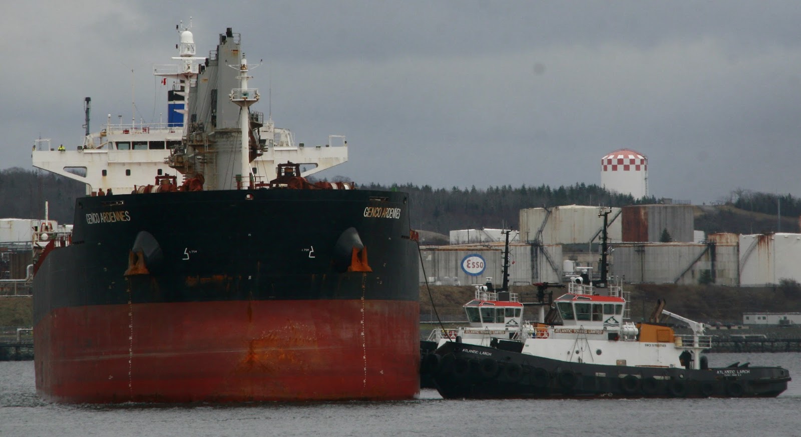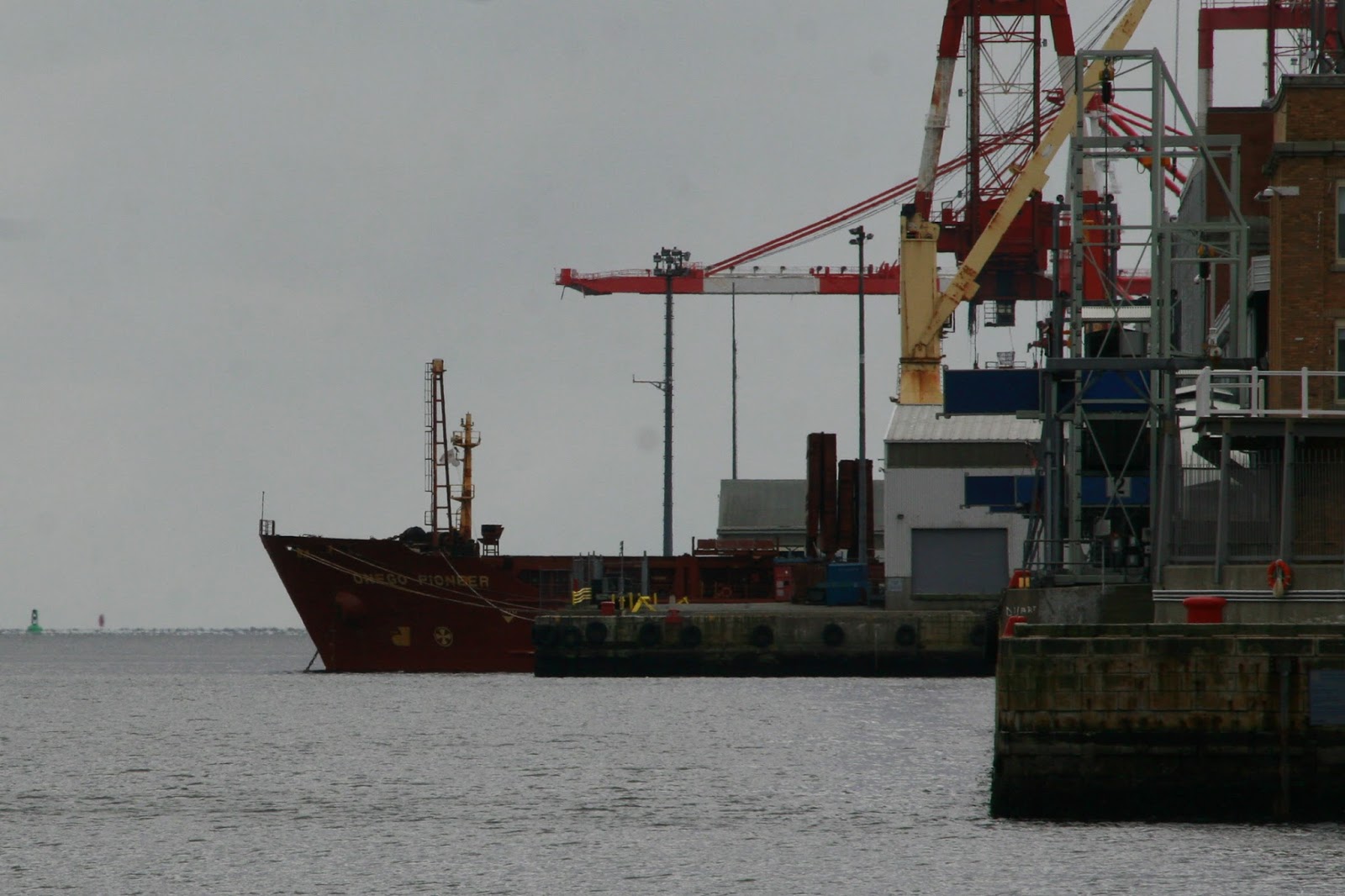 The bulker Genco Ardennes arrived unladen from Quebec for pier 28. The General Cargo Ship Onego Pioneer is tied up at pier 27 delivering rails for CN, with her bow out in the stream (Bottom)