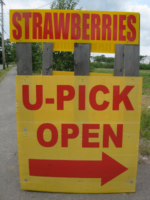 After a pit stop at Just Us! Coffee Roasters in Grand Pre for some coffee, we headed into Wolfville to pick up breakfast at the Wolfville Farmer’s Market. I was jonesin’ for a baked good – as per my usual Saturday morning plan – and after scoping out ‘the goods’ we both decided on a lovely stall that sold muffins, squares and all other types of fruity, chocolaty goodness. Judging from the map on the WFM website, I think it must have been Ariel’s Baking. My pal went for an oatcakey-type option with dried cranberries, pumpkin seeds, nuts and chocolate chips, while I decided on my favorite type of muffin – a Morning Glory, studded with walnuts, carrots and coconut. We were both full by the time we were halfway through, and put them aside for the real task at hand, the Strawberry U-Pick.