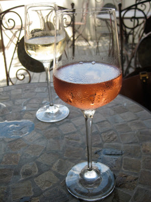 We ordered wine – pronto! I sipped on a glass of Grand Pre’s Verrazano Rose, while Maria chose a Nova Scotian white.