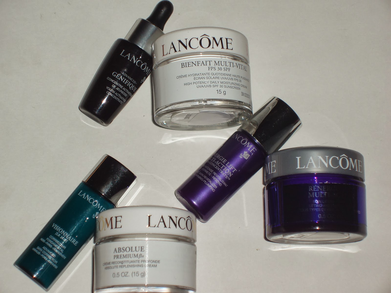 – The purples: Renergie Lift Multi-action Reviva concentrate (10ml) & Renergie Lift Multi-action Lifting and Firming cream (15ml)