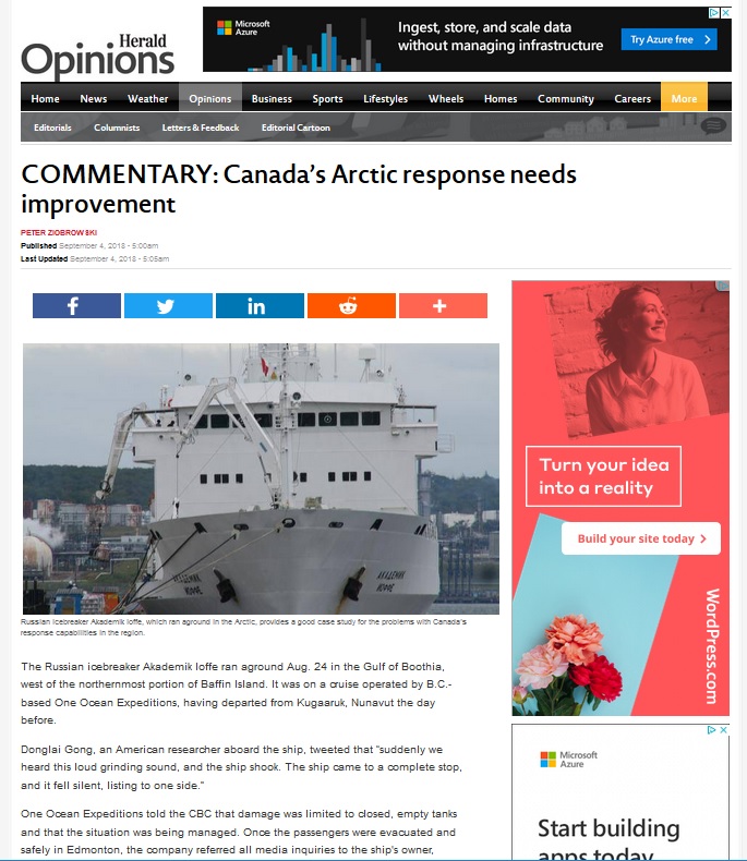 You can read my piece on Arctic Response (or lack there of) in today’s Chronicle Herald, in print, or Online