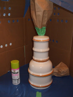 1. Use painters tape to cover the metal bracket for the shade, the light socket and the electrical cord. Tip: use paper lunch bags (or any other small bag to slip over the bracket, socket and cord. Tape them closed and you can be sure no paint will reach them.