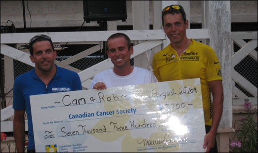 On Thursday, University of Toronto medical students Rob Ciccarelli of Sarnia, Chris Farlinger of Owen Sound, and Bedford’s own Cameron Starratt completed their cross-country bike tour to raise money for the GIVETOLIVE charity which helps fight cancer.