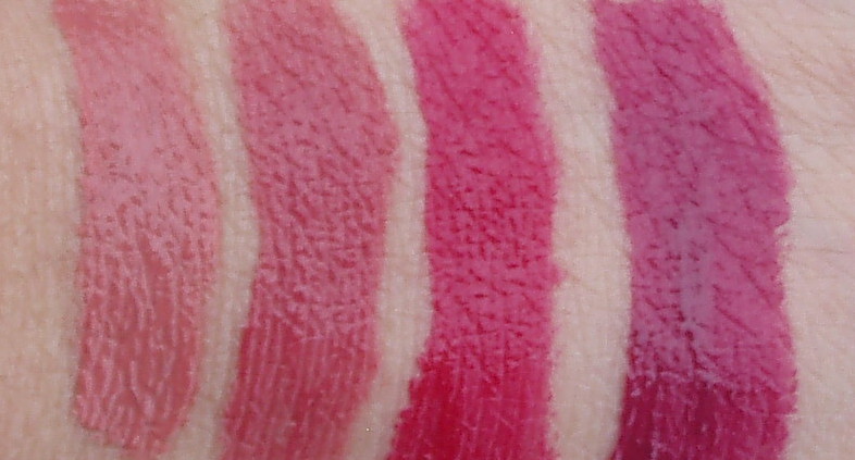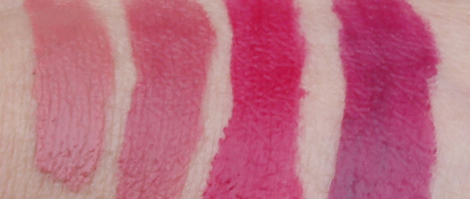 Bare Attraction is more nude and works better as a liner top-up while Nude Allude is sufficient on its own. Rouge Envy is the bold one in the bunch, a pinky red and Forbidden Kiss turns out to be a fuchsia pink, not a darker plum as expected.