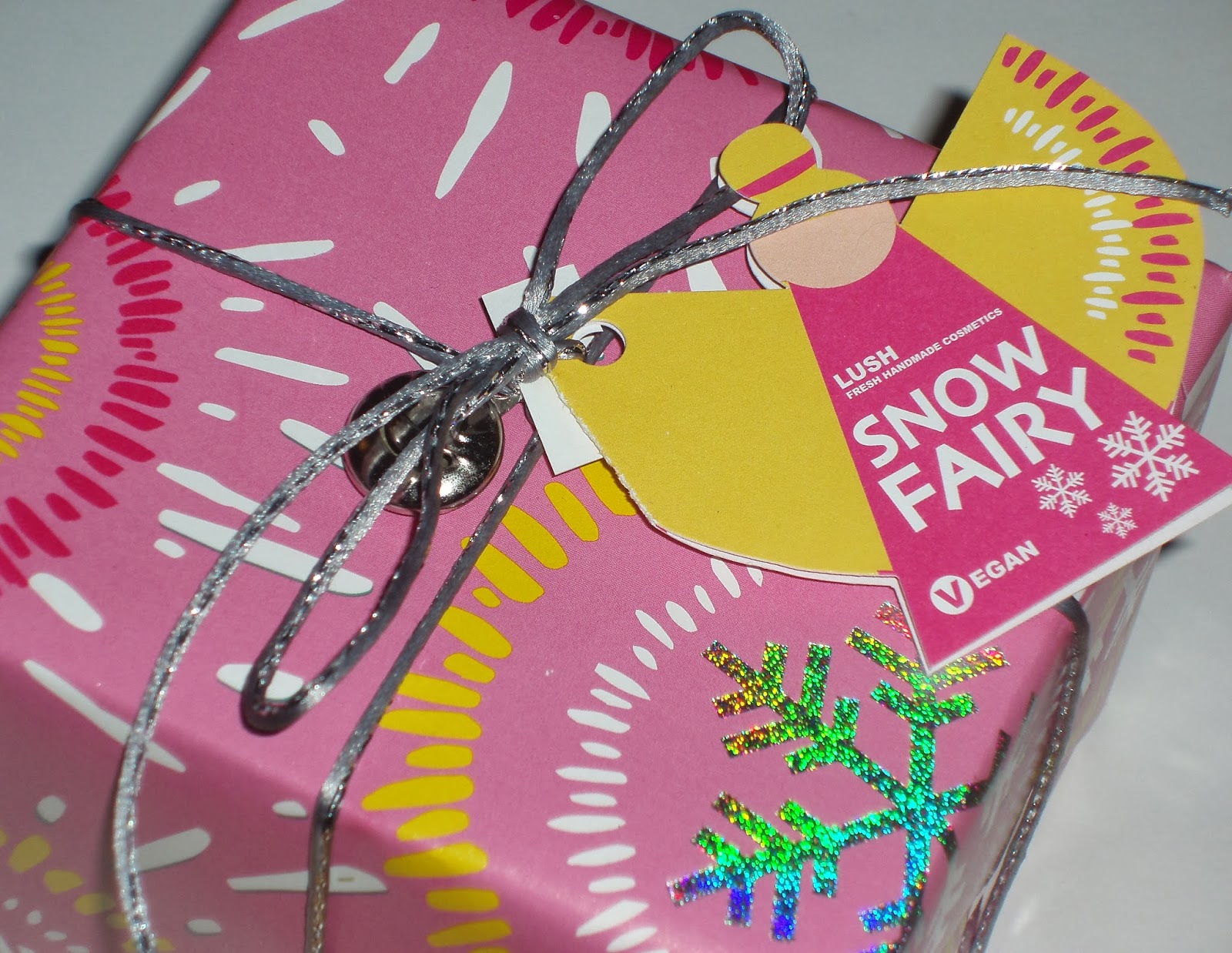One of the gift sets Lush offers this season is the Snow Fairy Box ($22.95). It’s pink and it jingles 🙂