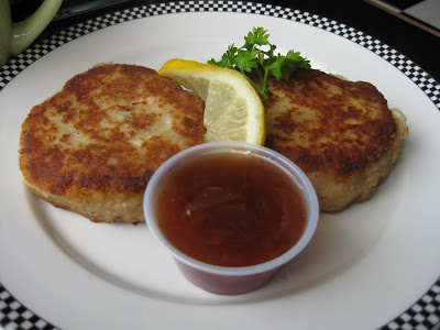 My poppa decided on the fish cakes which bode well for me as I was torn between the two dishes. These were some of the nicest fishcakes I’ve had in NS…and growing up in NL, I’ve had my share (Don’t worry pops- yours are the best!). They were nice and savory with a crisp crust and paired with the same chutney as my scallops.