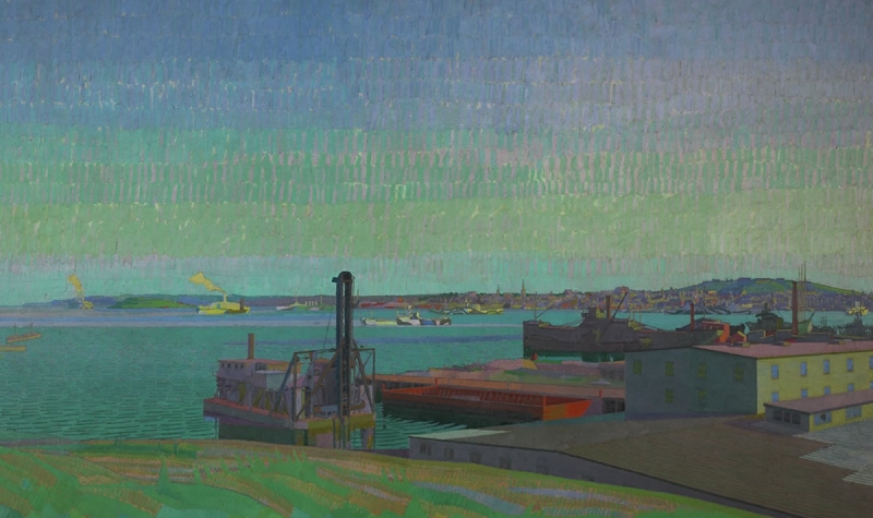 Harold Gilman, Halifax Harbour, 1918. Oil on canvas, 198 x 335.8 cm. National Gallery of Canada, Ottawa. Transfer from the Canadian War Memorials, 1921. Photo: NGC The Painting looks to be looking south, from Dartmouth cove.