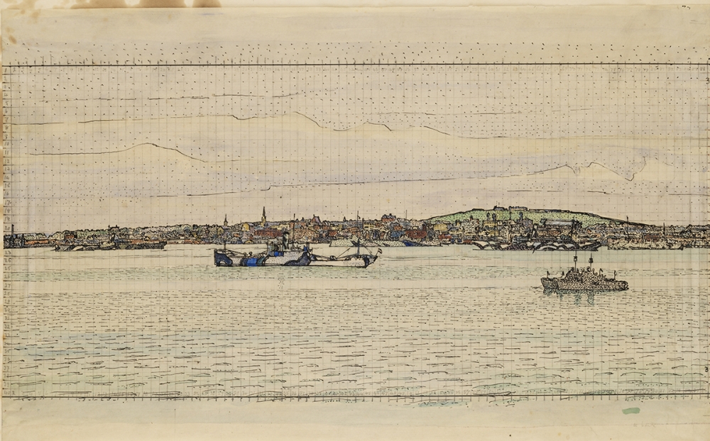 Harold Gilman, Halifax Harbour, 1918. Ink and watercolour on paper, 33.5 x 54.5 cm. Gift of Mrs Harold Gilman (no.VAG 31.57). Collection of the Vancouver Art Gallery.