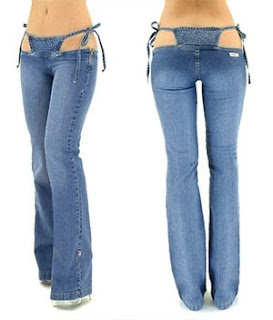 The idea was it’s hip to wear low rise jeans, but then they are too low that we need to take care of the underwear showing issue. Then ta da, problem solved, 2-in-1 Bikini jeans.