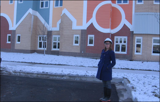 Holly MacLean, Public Relations Officer, stands in front of Northwood West Bedford Continuing Care Centre. The centre is scheduled to open in April 2010.
