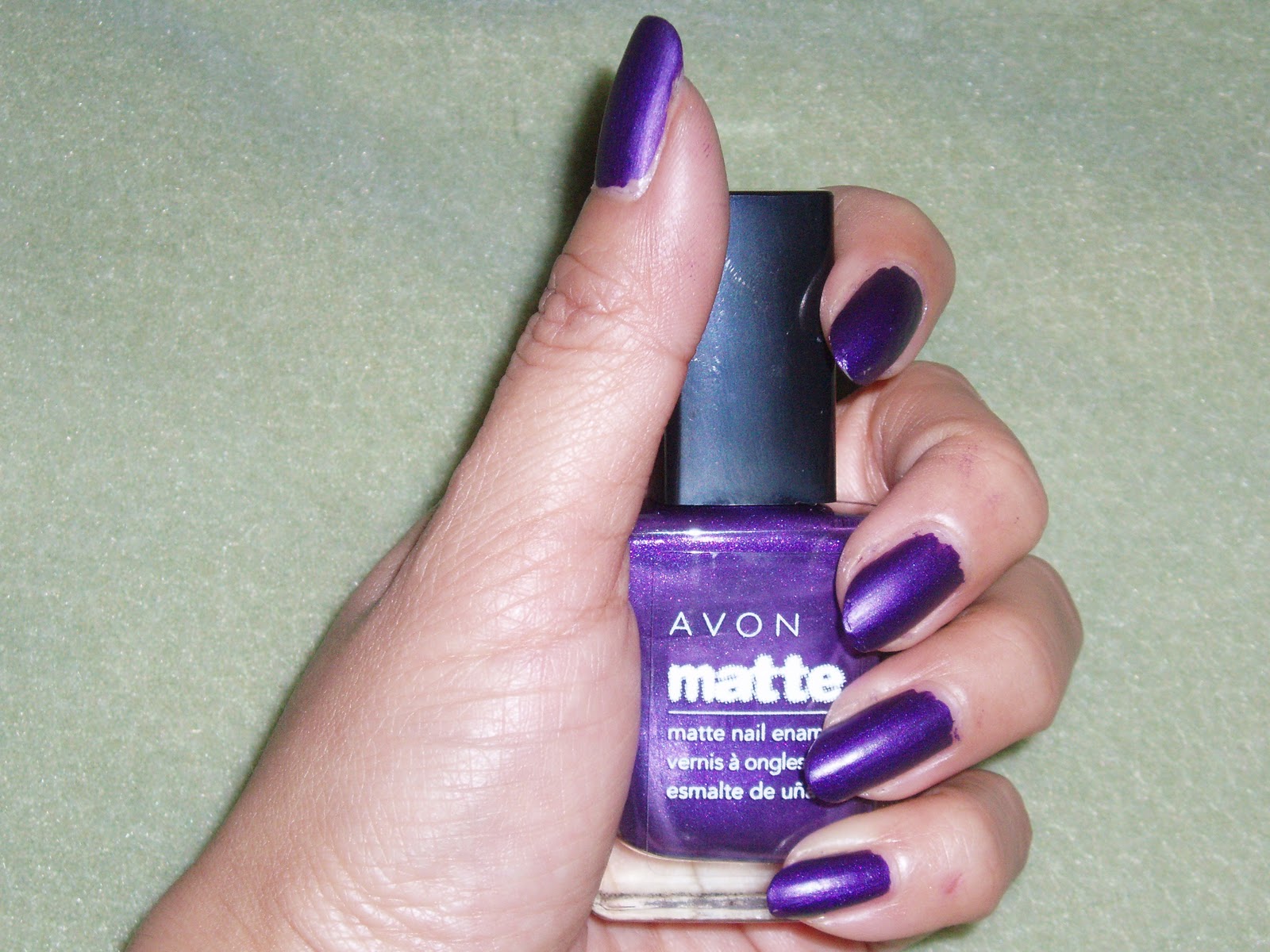 This is Avon Violetta with a coat of Claire’s matte top coat. You would think it would look even more flat, but nope, it turned into a satin finish which surprised me. Under direct flash, it even shone a little, lol.