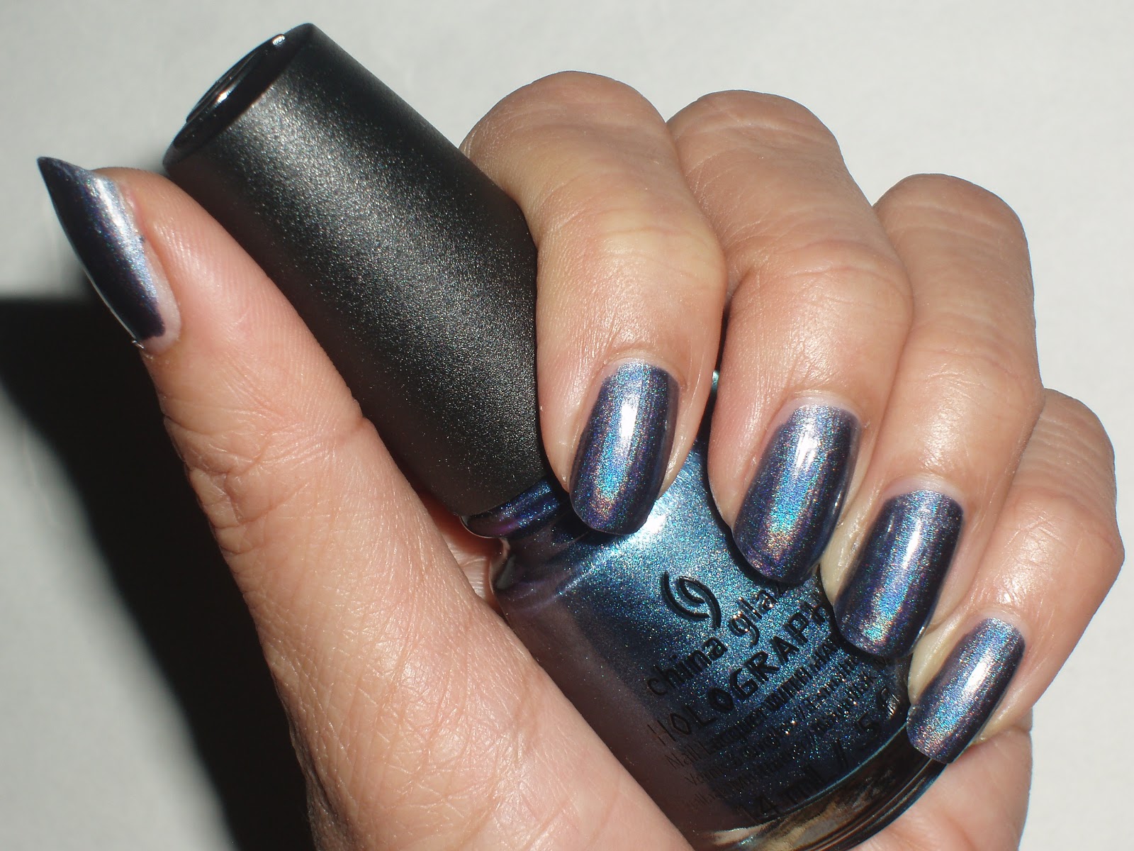 Under direct lighting, the shade comes to life. I love the holographic surprise the flash brought out in the pics. We all wish the Holograms look this way naturally, reality just falls short a little but is still pretty. I wonder why China Glaze did not go all the way for full holo effects for this collection. No doubt they could do it.