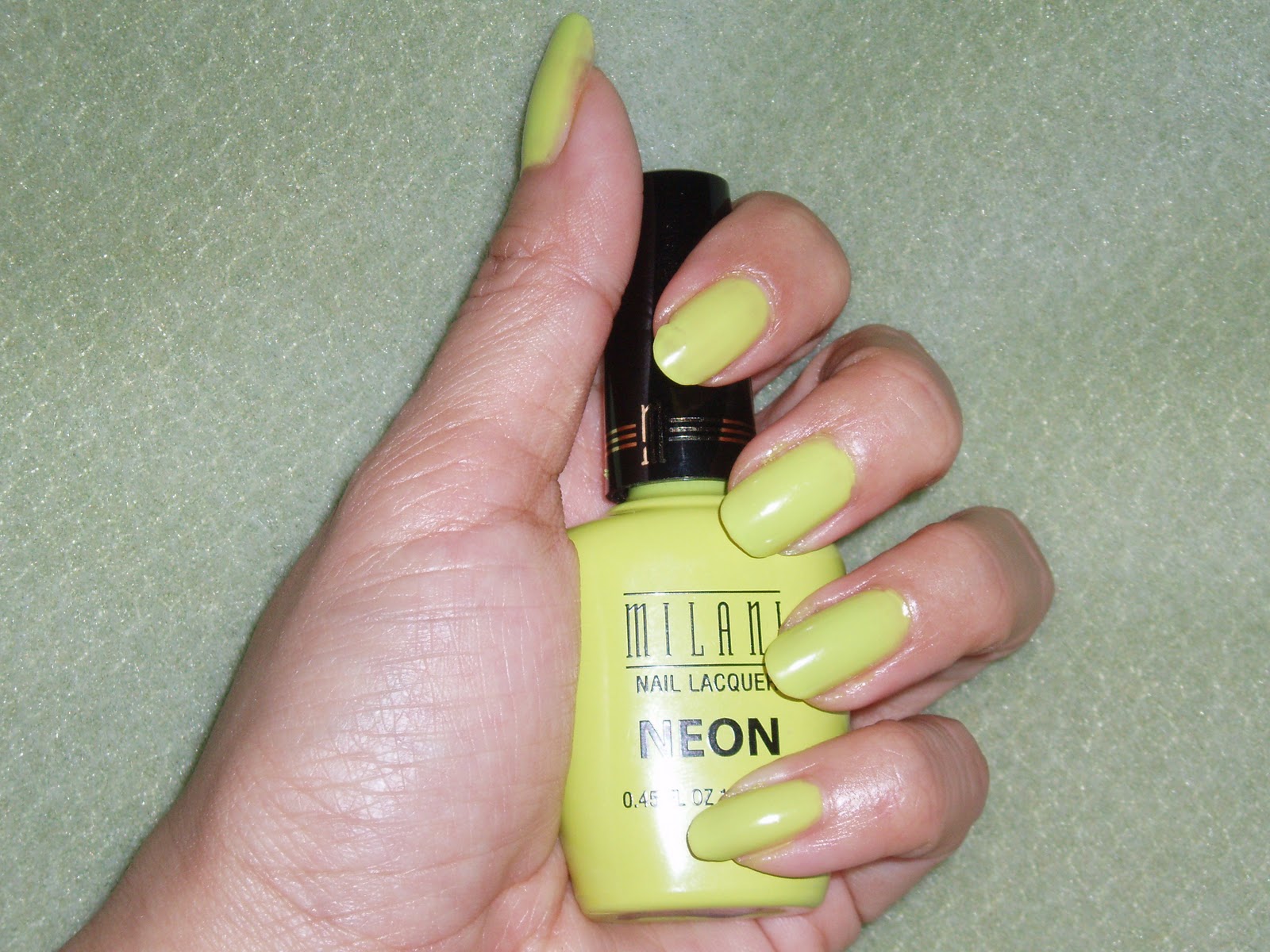 This is the base colour I chose: Milani Totally 80’s. This is a shade from the neon line, I figured it would shine through better from underneath a dark cracking coat.
