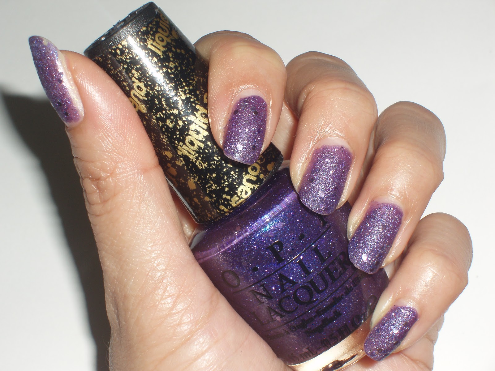 This was indoor, with flash. What the pic cannot show you well was how sparkly the lavender glitters looked on top of the purple matte and textured base. It is unusual but awesome. And Can’t Let Go is purple, on top of all the good things above. Love is in the air!