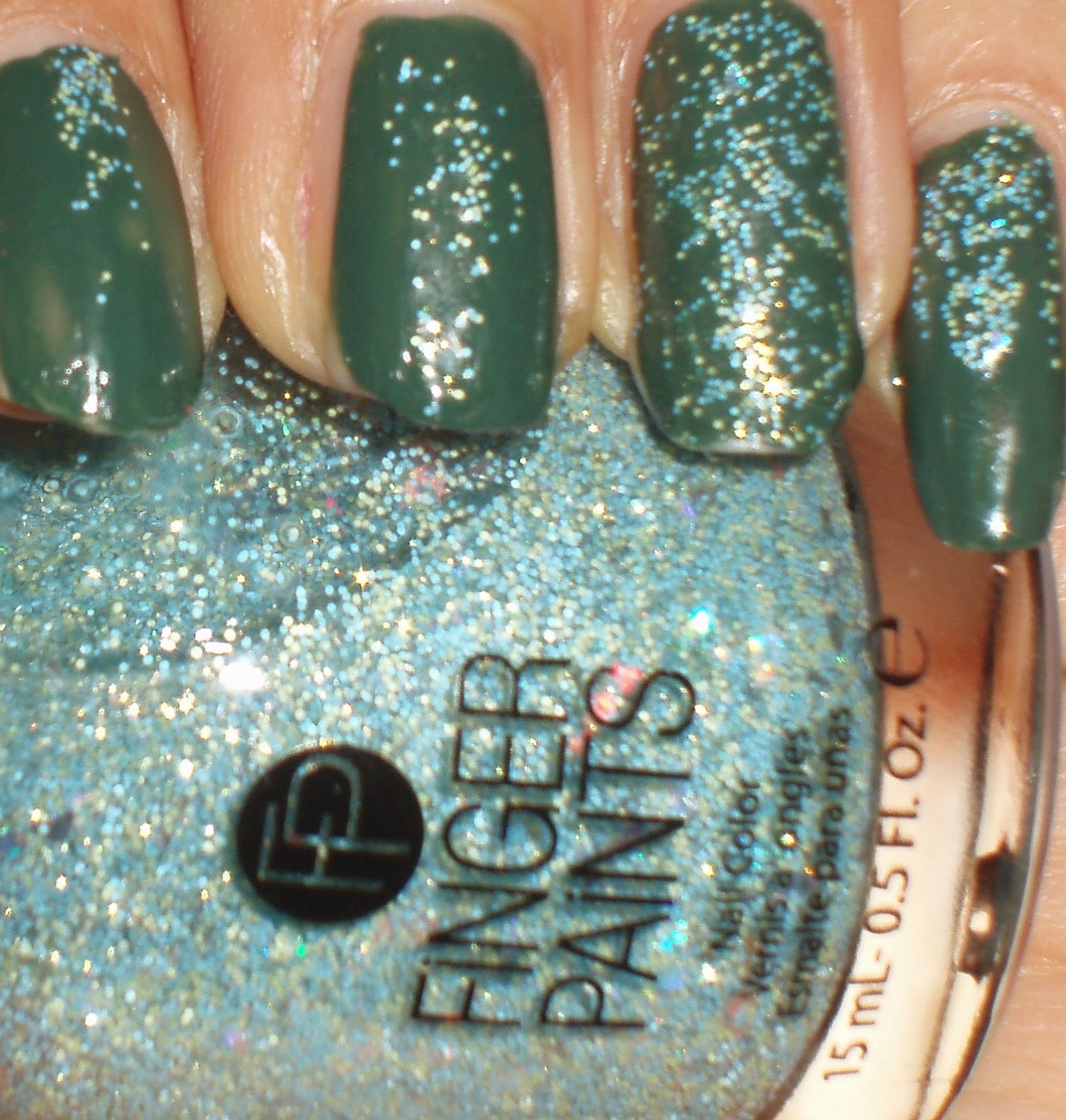 The random glitter accent is Finger Paints Crystal Springs from the Pastel Rain collection this Spring. When I saw the display at Sally, I thought the shades were pretty but only reached for the glitters and passed on the cremes. Typical me huh?