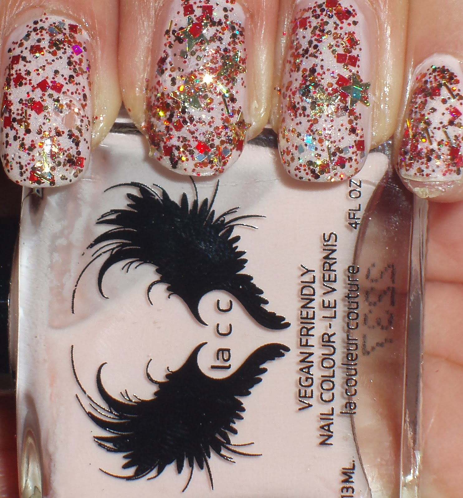 The clear base makes it a good glitter top coat on top of almost every colour. Here I chose a pale pink nude, la couleur couture 1992, 2 coats.