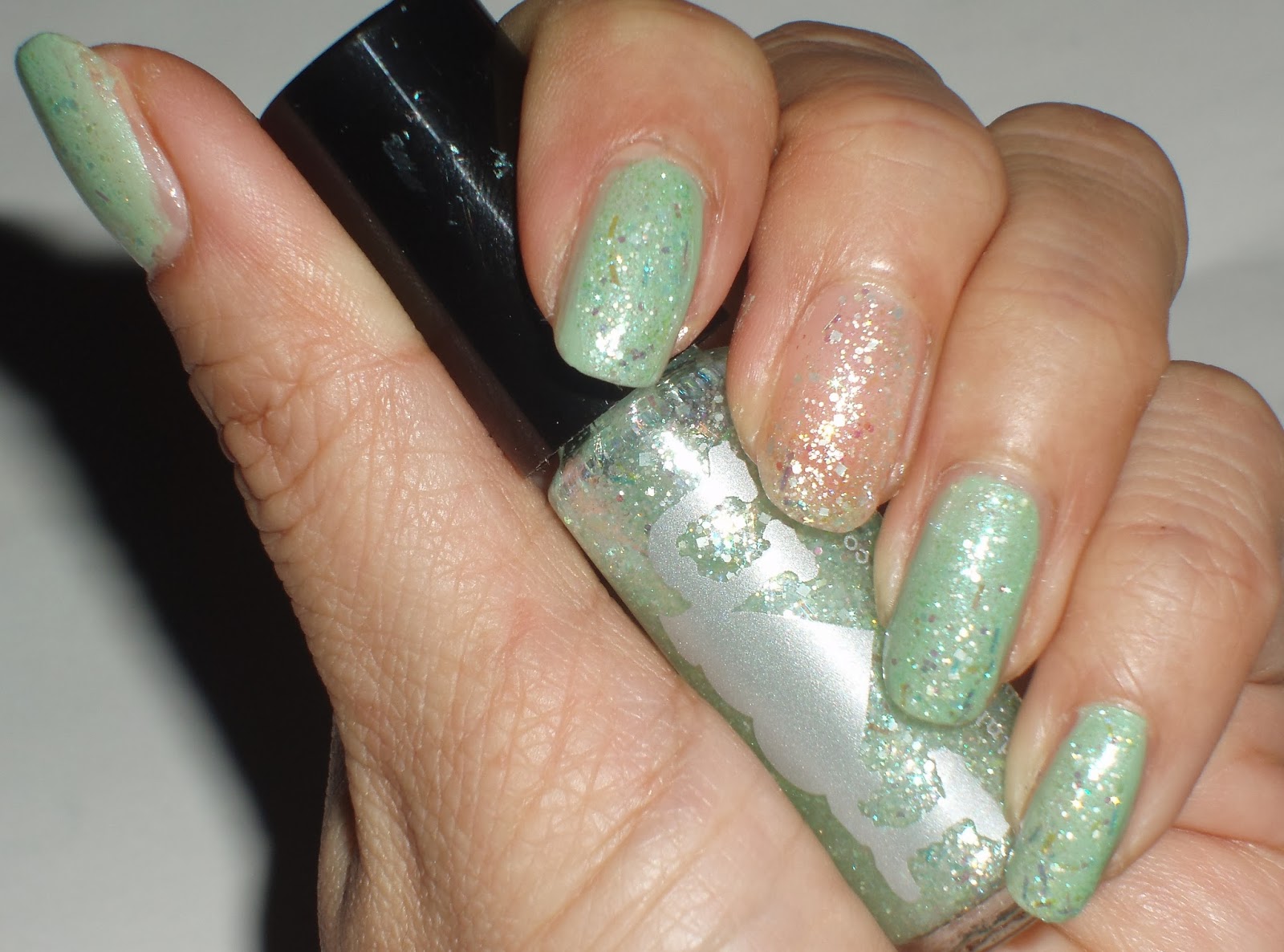 Lifestream houses mint and white glitters in its clear base, and it is natural that I layer it over a mint base – la couleur couture 1968, 2 coats each.
