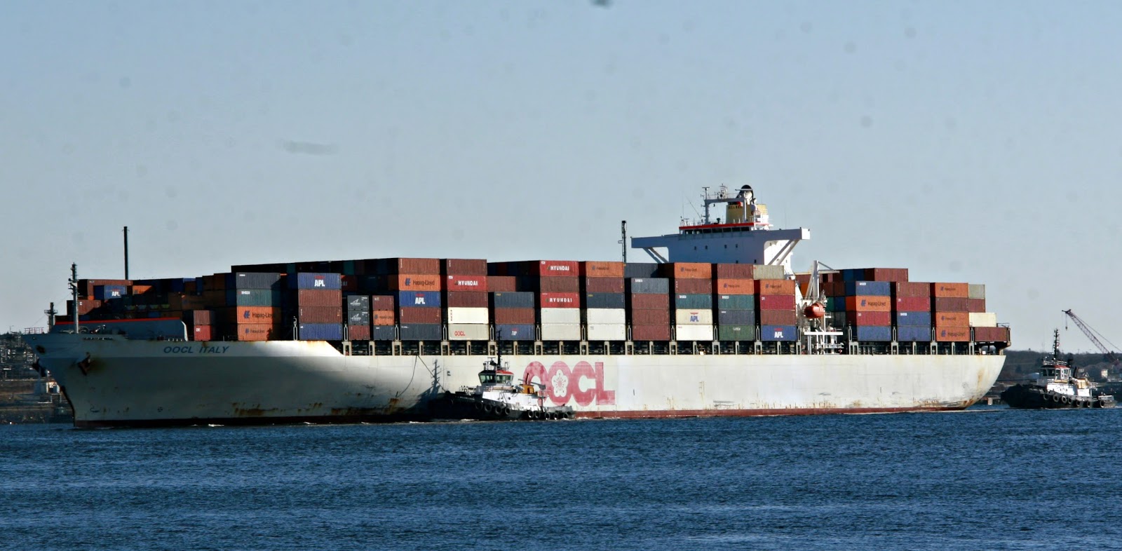 OOCL Italy arrived over the noon hour bound for Fairview Cove. Her last port was Cagliari, Italy. Built in 2007 in Japan, the ship is Registered in Singapore. She sailed as Vietnam Express from April 2010 to April 2013, and stopped in Halifax under that name.