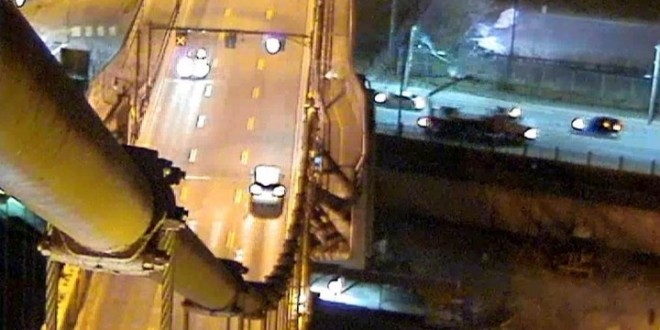 Halifax Regional Police is requesting the public’s assistance to identify a truck and its driver involved in a hit and run that occurred in Halifax on January 12, 2016. At 6:50 p.m., a large truck was travelling north on Barrington Street with the boom elevated. After driving under the MacDonald Bridge the boom hooked onto some power and telephone lines which brought down part of a telephone pole causing damage. The pole then swung into the roadway and collided with the side of an SUV travelling in the opposite direction. The male driver of the SUV was not injured but his vehicle sustained major damage. He was unable to obtain a license plate for the truck or any company logos as it was dark at the time. The truck is described as red in colour and the driver appears to have stopped, lowered the boom and left the area after the collision. The colour of the truck is red but appears different due to the camera filters. Police are asking anyone with information about this incident and/or the driver of the truck to call 902-490-5016. Anonymous tips can be sent to Crime Stoppers by calling toll-free 1-800-222-TIPS (8477), submitting a secure web tip at www.crimestoppers.ns.ca or texting a tip – Tip 202 + your message to 274637. 16-5838