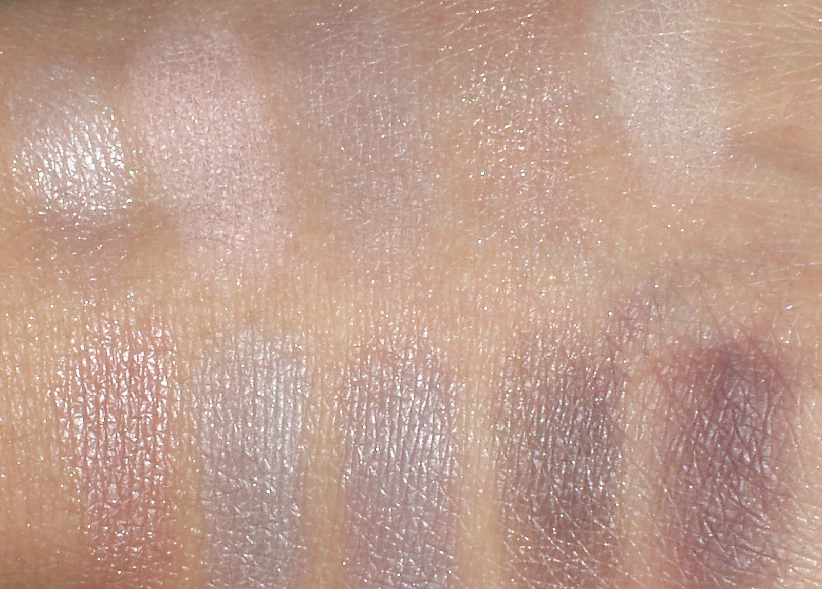 As you might notice, the third and fourth shade of first row almost do not show up on me at all and the plum in the lower right corner is probably the only one that works for the crease/ outer V.