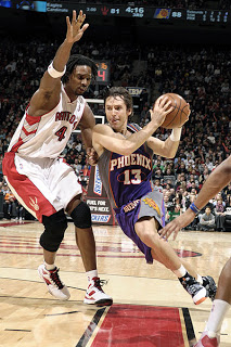 The problem with these players is that they are MEDIOCRE. So painfully average. Not too beat a dead horse, but their lack of athleticism kills the Raps. This was obvious during yesterday`s game vs Phoenix. Amare Stoudamire, Leandro Barbosa, Matt Barnes, Jason Richardson, even Grant Hill. These guys can run and jump all day long, and Steve Nash is the perfect QB for this group of thoroughbreds. Imagine Jose Calderon with that bunch, the Raptors would be serious contenders.