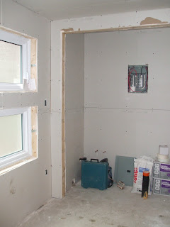 So this week was an exciting one — another inspection and all the drywall – installation, taping, mudding, sanding and priming – have been completed.