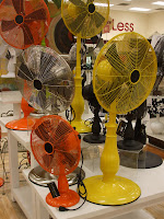 hot fans – if you are looking for that splash of bright color, why not try one of these? Finally, someone has a made a fan that is not hideous looking. With retro styling these fans are not only functional, but fun and would be a welcome addition to any hot space. Featured in stainless steel, black, yellow, orange, lime green and white.