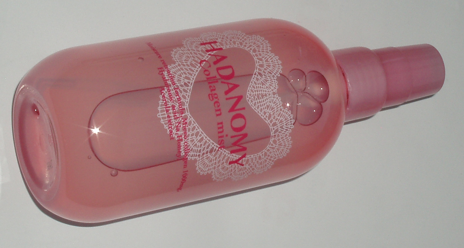I bought this cute little pink bottle at Hachi Hachi, a Japanese 2-dollar store (similar to Daiso). It is Sana Hadanomy collagen mist, comes with an eye catching sticker and tight plastic wrap over the bottle.