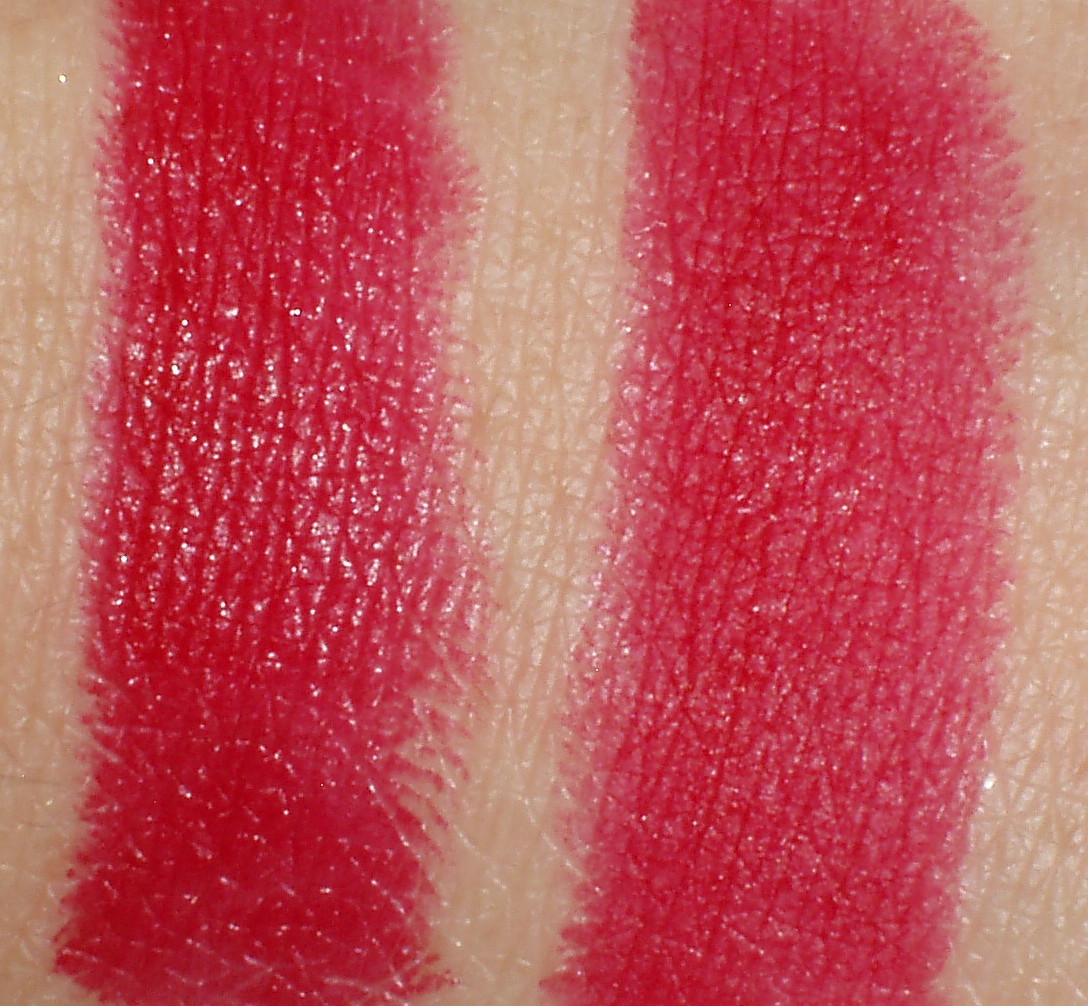 This is L’Oreal Colour Riche Pure Red lipstick in Blake’s Red I showed you yesterday – on its own (left) and with Insta-matte on top (right). My cream lipstick stash is just doubled 🙂