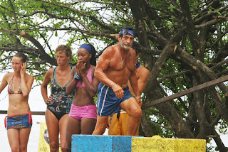 Yes, we actually heard the mythical Kelly Purple speak this week. Not that she hadn’t anything of consquence to say. The immunity challenge was pretty awesome – a bunch of the tribe members had to move around some chutes while two tribe members stood atop platforms and rolled balls down the chutes in an effort to smash tiles on the ground. What I liked about the challenge was that it had a learning curve. Brenda and Kelly were rolling the balls for La Flor, and they clearly never caught on. Benry and Alina rolled Espada’s balls, and they caught on quickly – and killed the other tribe.