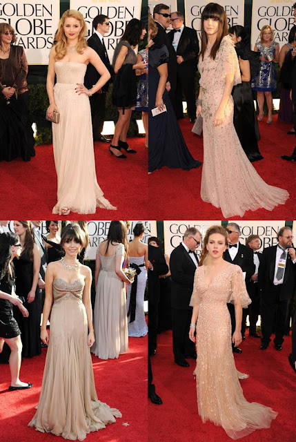 Overall, I think the red carpet looks for last night’s Golden Globes were good. There were more hits than misses. (Check out my separate “Best and Worst” post.) I do have one complaint, though – not enough color! Too many women were wearing gowns in nude, blush, or another variation of bland. Luckily, the other trend of the night was a gorgeous emerald green, and they along with a few other celebs who showed up in beautifully hued gowns saved the night.