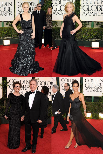 Oh. My. God. A lot of people liked Jennifer Lawrence‘s gown, but I thought it looked as though it was made of tangled up cassette tapes and shredded garbage bags. Julia Stiles got her hair and makeup right, but that dress did her no favors. But they were nothing compared to Halle Berry, who apparently thought it would be fun to show up to the Golden Globes in lingerie. But hey, at least she remembered to comb her hair, right? What was Annette Bening thinking? I might have been able to forgive her for the drab dress if she didn’t look like she’d just gotten out of bed from the neck up. What the hell?