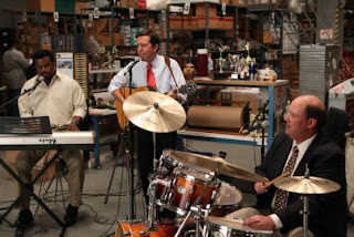 The subplot this week was also hilarious, because it involved two of my favorite characters – Andy and Darryl. I’m so glad the writers kept Darryl on the main floor with the rest of the crew, because his interactions with them are some of the best scenes. Andy wanted to one-up an old classmate who’d scored some sort of commercial deal or something, so he offered to pay Darryl to jam with him in the warehouse. They ended up actually enjoying themselves, and used Kevin for a novelty song about frogs. This band MUST be seen again.