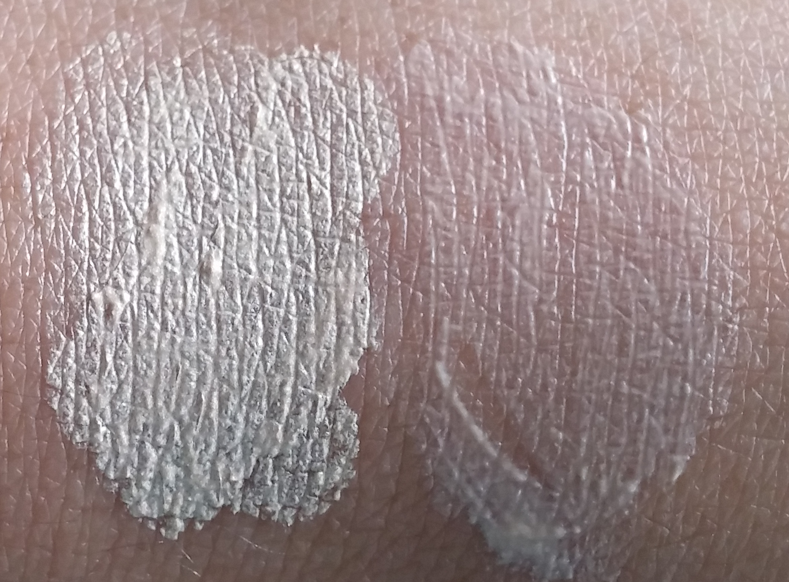 Swatches of Candlelight (left) and the original Shadow Insurance (right) straight from of the tube, then slightly blended out. Note that I used about 3 times of the suggested rain drop size here to show the finish, hence the illuminating effect is also more dramatic than what you would see on the eyes.