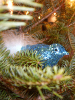 I added a touch of whimsy (and a peek at my sense of humor) with three little sparkly blue birds that are tucked into the tree to help hide a couple of the natural gaps in the branches. Unexpected for me, because I am not a fan of birds (in the realm of decorating) nor am I of feathers. But that’s a whole different blog topic. Again, I think the twinkle factor saves them.