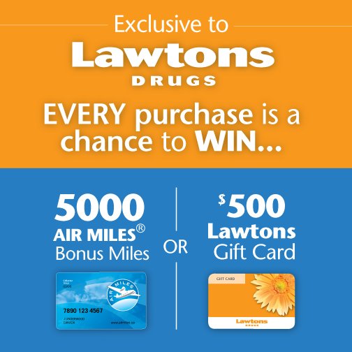 Lawtons: Every purchase has a chance to win 5,000 bonus Airmiles or $500 Lawtons gift card (3 prizes to be won)