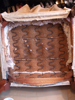 Anyway, after I acquired my new old chair, I had second thoughts. So, I got a quote to see what it would cost to get it professionally reupholstered. The quote came back at $350 for labour, $60/yard and 6 yards of fabric, and an 8 week wait!